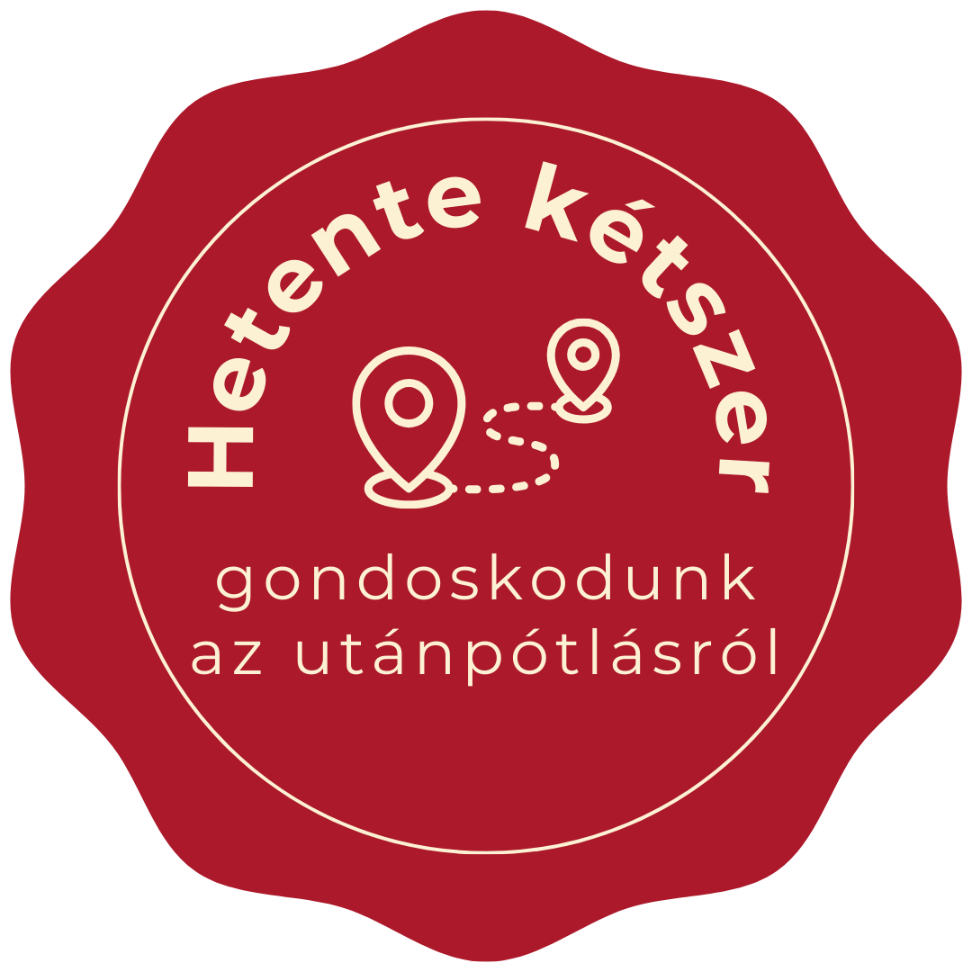 Budapest és Pest megye területén hetente kétszer, hétfőn és pénteken vállalunk kiszállítást, ezáltal garantáljuk, hogy rendszeresen lesz utánpótlás.